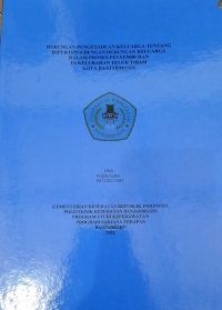 Hasil penelitian dihasilkan bahwa pengetahuan keluarga dalam kategori cukup (43,3%) dan dukungan keluarga dalam kategori baik (66,7%). Hasil analisis Somers’D didapatkan ρ value = 0,012 < ∝ = 0,05, berarti adanya hubungan antara pengetahuan keluarga tentang hipertensi dengan dukungan keluarga. Keeratan hubungan dari 0,412 yang di kategorikan sedang.