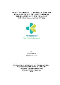 ASUHAN KEPERAWATAN PADA PASIEN STROKE NON HEMORAGIK DENGAN IMPLEMENTASI TEKNIK RELAKSASI BENSON UNTUK MENGATASI GANGGUAN RASA NYAMAN (NYERI)